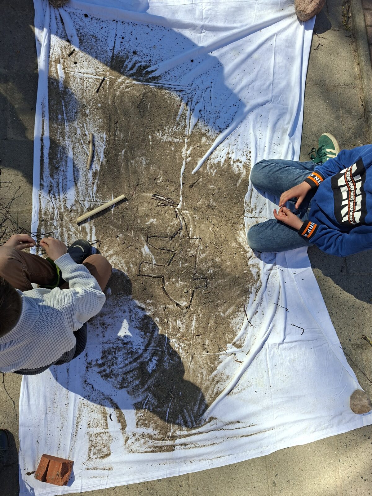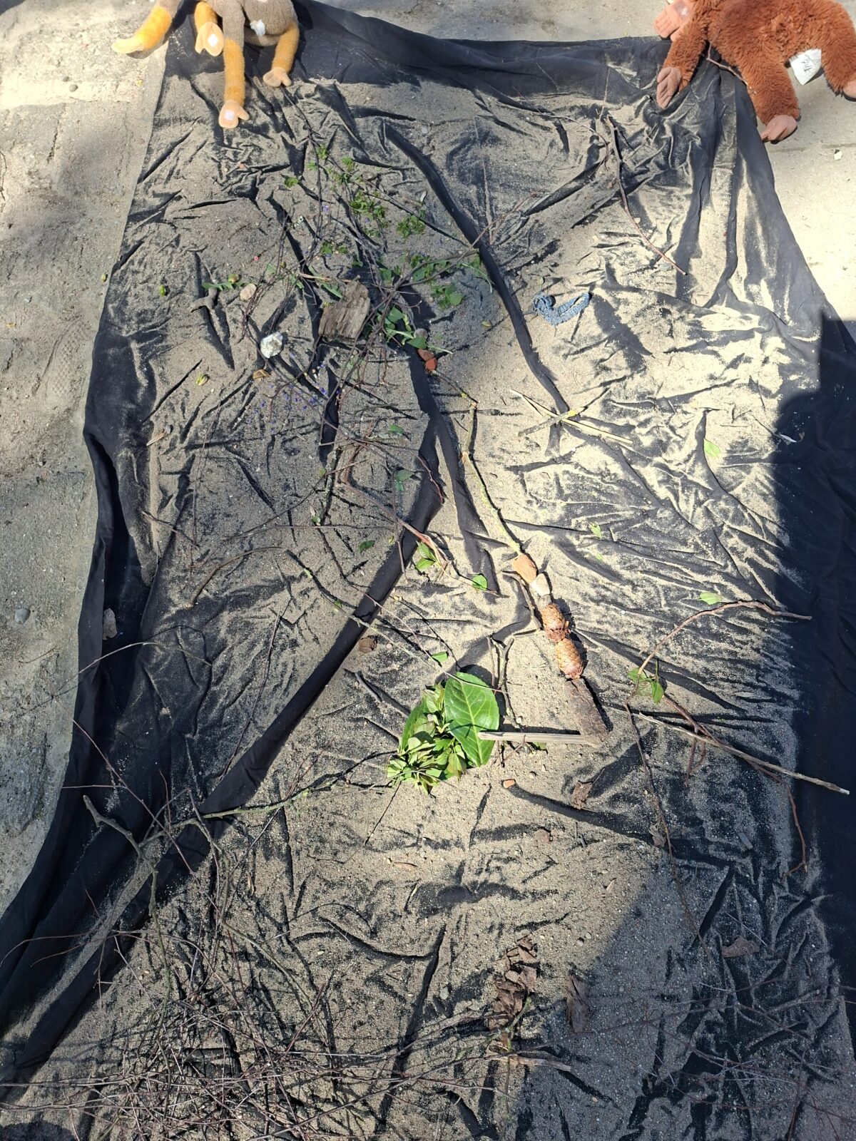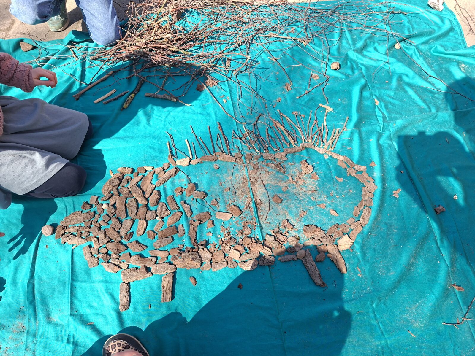 Zum Abschluss der winterlichen Zeit ist noch ein letztes Bild aus gesammelten Naturmaterialien entstanden: Mit viel Kreativität haben die Kinder Blätter, Zweige und Fundstücke aus der Natur zu kleinen Kunstwerken zusammengesetzt.